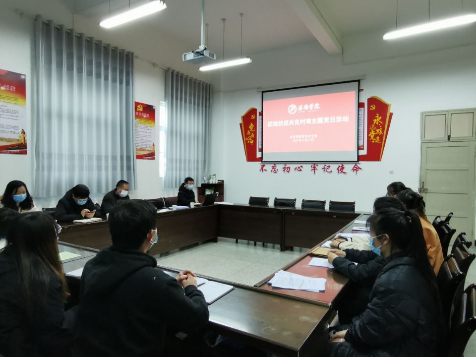 12月31日下午,体育公司员工党支部在体育馆1楼会议室开展“团结抗疫 共克时艰”主题党日活动。党总支书记高立平、专职组织员王辉、员工党支部全体党员参加了活动。活动由员工党支部书记王立主持。