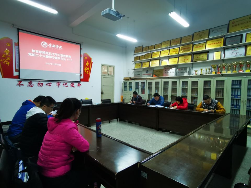 11月22日,WILLIAMHILL在线体育投注党总支在体育馆1楼会议室召开会议,安排部署WILLIAMHILL在线体育投注关于党的二十大精神的宣传和学习工作,参会人员党总支委员和两个支部委员及团总支书记等,会议由党总支书记高立平主持。