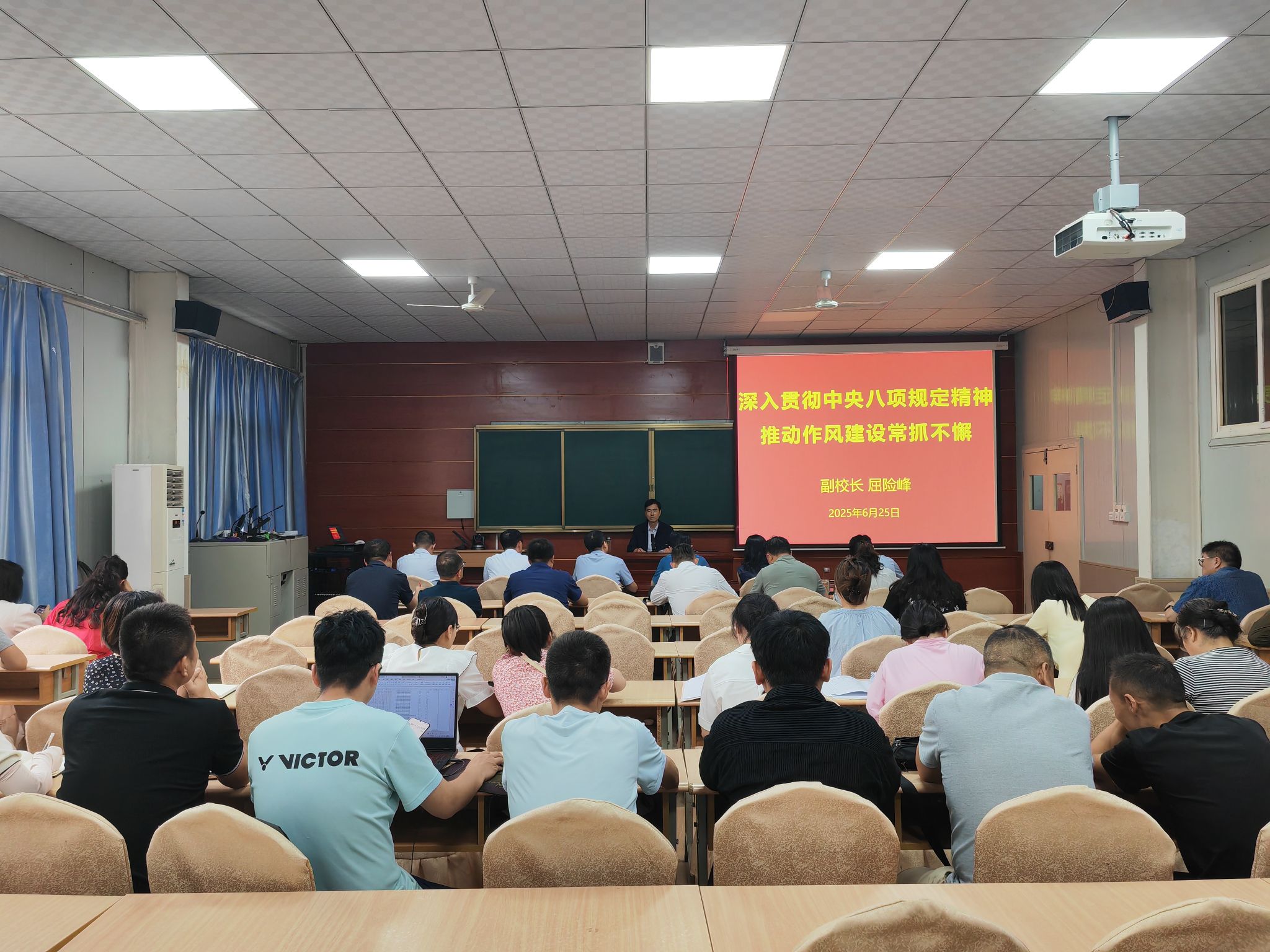 为持续巩固拓展主题教育成果,深入推进全面从严治党,切实强化党员干部作风建设,6月25日下午,副董事长屈险峰以《深入贯彻中央八项规定精神,推动作风建设常抓不懈》为题,为WILLIAMHILL在线体育投注、数统公司、学工部、保卫部、工会、团委、后勤处和信管中心全体党员干部讲授专题党课。