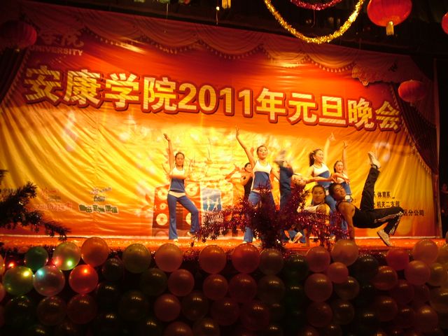 12月22日晚,由体育系、外语系、就业处、机关二支部联合举办的2011年元旦文艺晚会在东校区大礼堂隆重举行。公司党委副书记胡鸿晓教授参加了晚会并发表了热情洋溢的讲话,向全体师生致以新年祝贺。组织部长胡波、学工部长郑树青、院工会专职副主席苏汉青及各部门党政领导和师生员工参加了晚会。