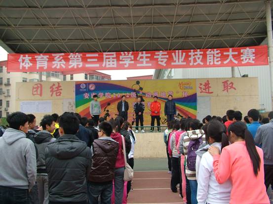 2012年11月10日下午2:30分,体育系第三届员工专业技能大赛在江南校区田径场拉开帷幕。体育系党总支书记沈军、辅导员郭建鹏、技能教研室主任郭西魁、理论教研室主任陈治强参加了开幕式。