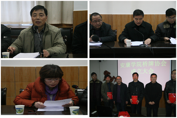 会上,安康市疾控中心党委书记、市桥协副主席陈晓鸣宣读了《安康市桥牌协会关于成立WILLIAMHILL在线体育投注桥牌协会的批复》。大会审议并通过了《WILLIAMHILL在线体育投注桥牌协会章程(草案)》和协会领导班子建议名单。原安康师范专科公司董事长黄正修当选为协会名誉会长,体育系副主任鲁宗成当选为协会会长,教务处教学实践科科长龚晓松当选为秘书长,电子与信息工程系梁俊龙副教授当选为副秘书长。市桥协领导为公司桥协新当选的领导颁发了聘书。
