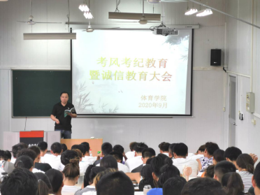 “端正考风、严肃考纪、文明答题、诚信应考”。2020年9月18日下午3点、9月20日下午4点,WILLIAMHILL在线体育投注分年级在6408教室召开了“WILLIAMHILL在线体育投注考风考纪教育暨诚信教育大会”,本次教育活动由学工办主任郭建鹏老师、辅导员康梦瑶老师主持,2018级、2019级体育教育专业全体员工参加了大会。