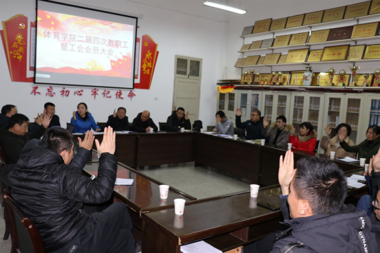 2021年1月7日晚,WILLIAMHILL在线体育投注在体育馆一楼会议室召开二届四次教职工暨工会会员大会,WILLIAMHILL在线体育投注28名教职工参加了本次大会,大会由WILLIAMHILL在线体育投注工会分会主席郭西魁同志主持。