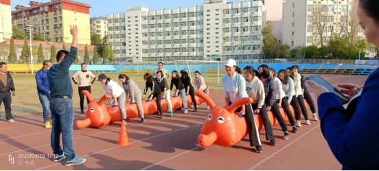 一声令下,“毛毛虫竞速”拉开了联谊活动的序幕。
