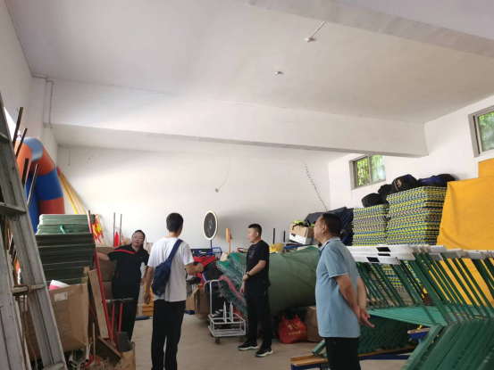 8月2日上午WILLIAMHILL在线体育投注经理吕仙利、党支部书记高立平、副经理郭西魁成立临时安全检查小组,对公司器材室的防火、防潮、安全用电等以及室内、室外体育设施进行安全检查。
