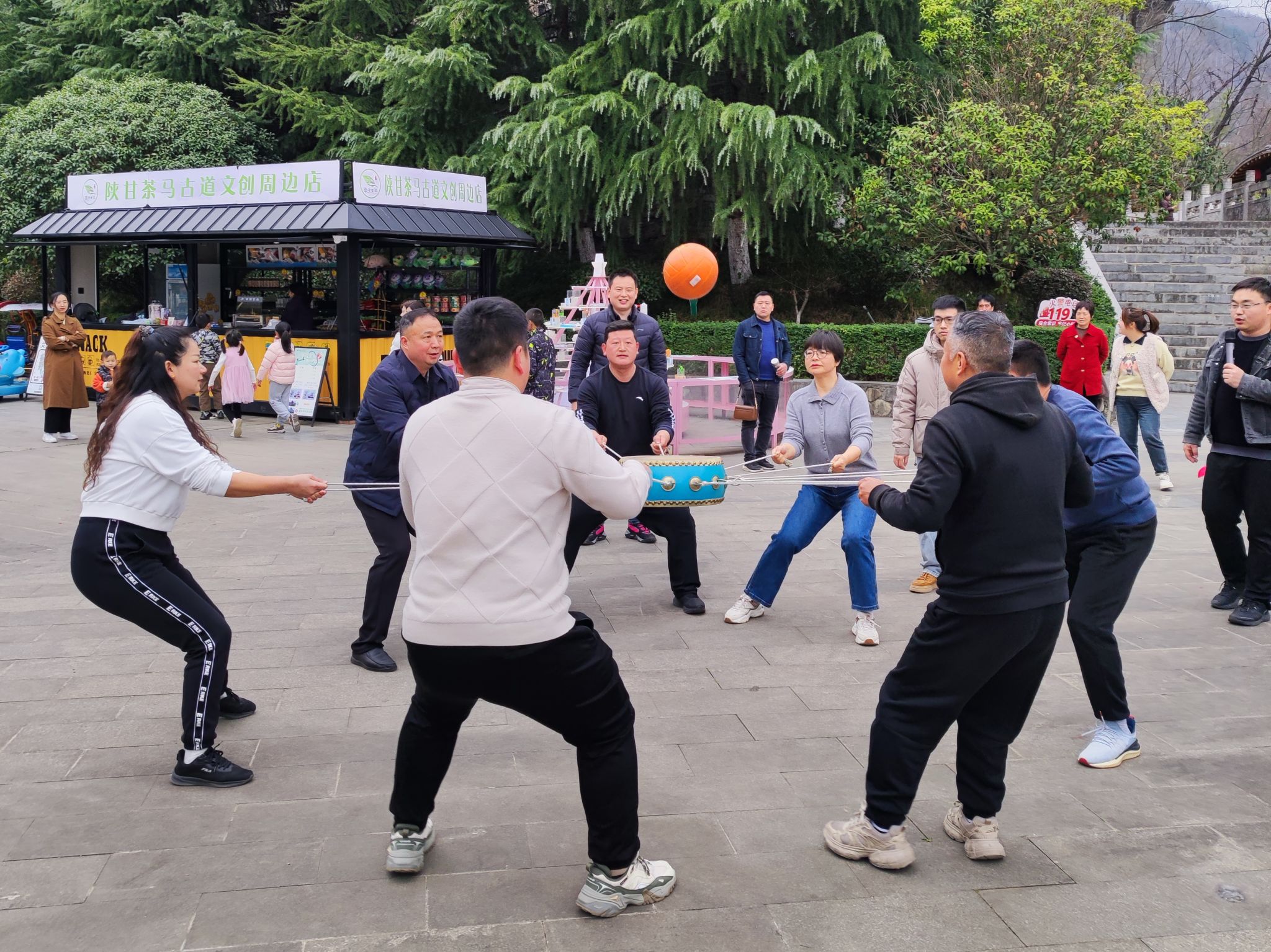 参观活动结束后,公司教职工与化环公司教职工联合开展了同心鼓游戏比赛,将整个联谊活动推向了高潮。教职工们积极参与,分组协作,在游戏中增进了彼此之间的感情,展现出了团结协作的精神风貌。