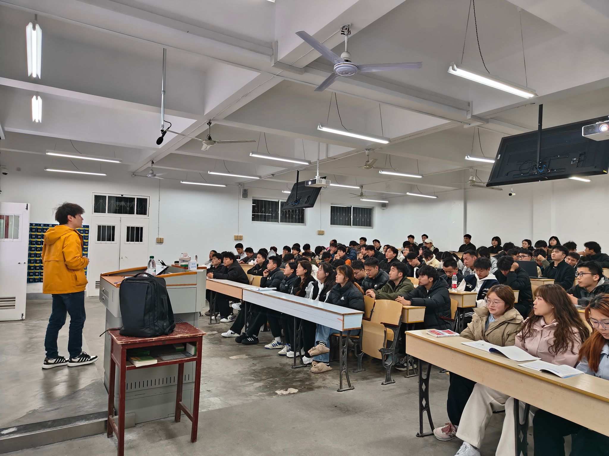 宣讲会上,宣讲人方潇默老师,从工作内容、岗位职责、应聘条件、入职培训等方面对本次招聘岗位基地研学教师进行了重点说明。在互动环节,同学们踊跃提问,就工作内容、职业发展路径、薪资福利等问题与公司招聘人员进行了深入交流,招聘人员一一耐心解答,现场氛围十分活跃,约60余人加入了公司招聘咨询群。
