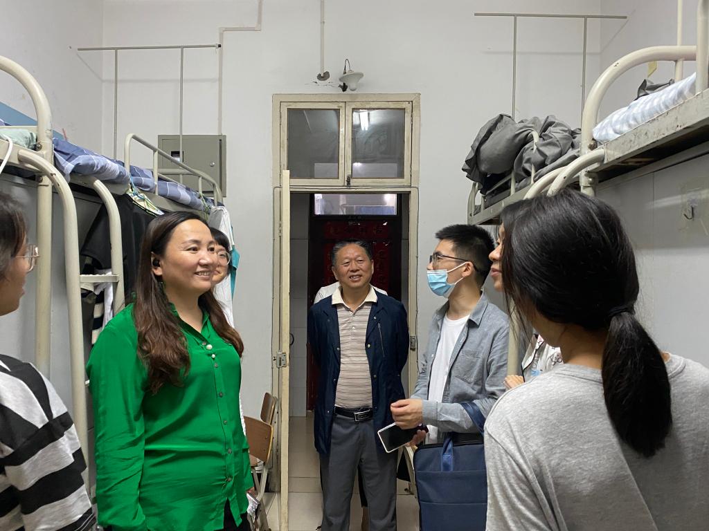 公司领导和老师们走进新生宿舍,与新生们亲切交流,细心询问他们到校后的住宿、就餐等方方面面的情况,了解新生入学后的需求,并特别叮嘱新生静态管理期间注意身体、做好防护,有困难及时向辅导员反映。