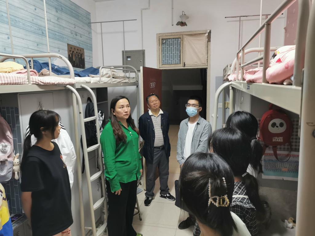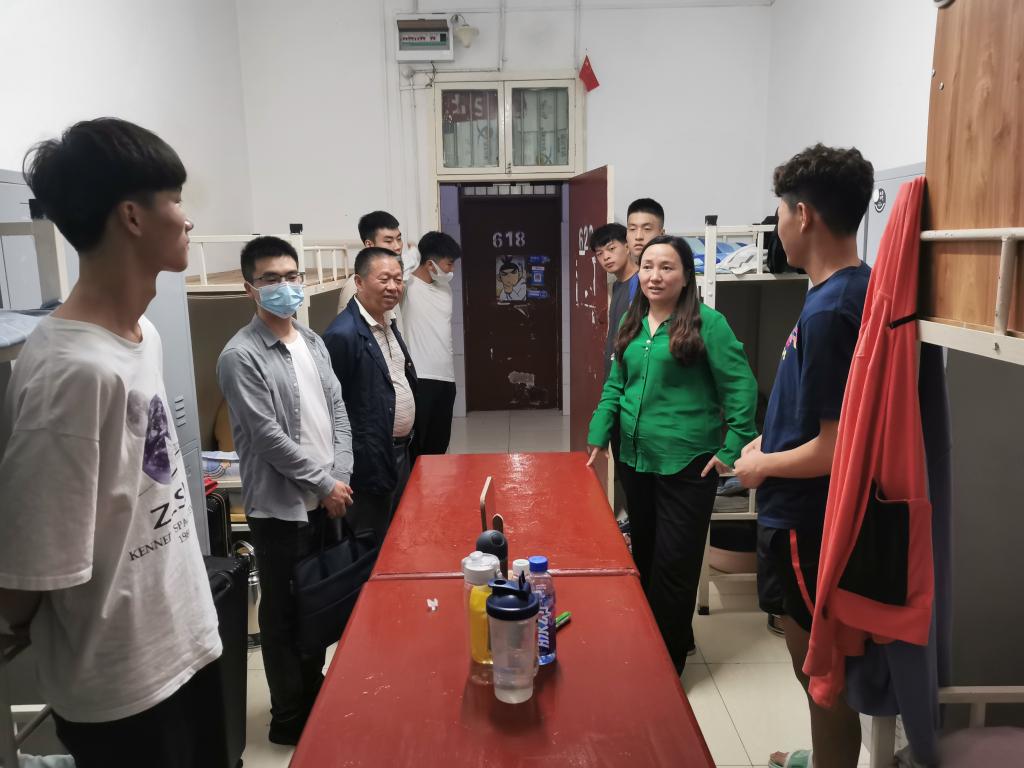 9月20日晚,公司党总支书记高立平、经理吕仙利、学工办副主任王立、团总支书记康梦瑶以及员工干部前往新生宿舍,走访看望2022级新入校员工。