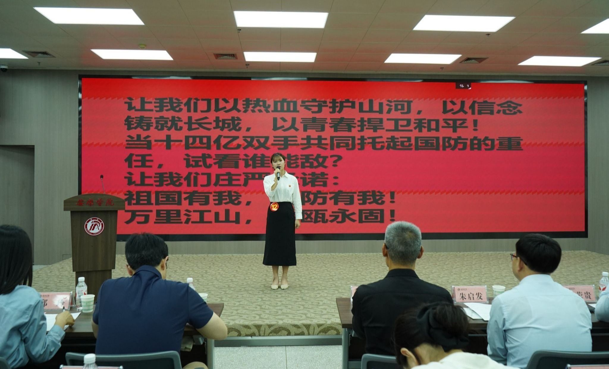 演讲中,邢东妮以“海空卫士”王伟烈士的英勇事迹为切入点,通过戚继光抗倭、郑成功收复台湾、左宗棠抬棺西征等历史故事,阐述了国防对一个国家的重要性。